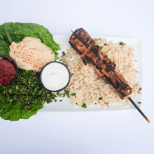 2 Chicken Kabob, 2 Chicken Cream Chop, 2 Kafta Kabobs and 2 Chicken Breast, Chicken Shawarma, Beef Shawarma: Served with Hummus, Rice and Fatoush.